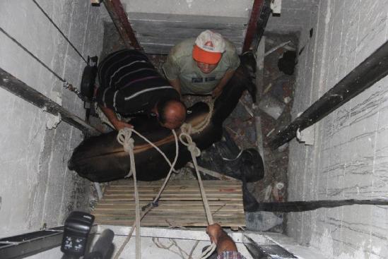 04 Ağustos 2015, Salıpazarı –Samsun; inşaat halindeki binanın asansör boşluğuna düşen inek
